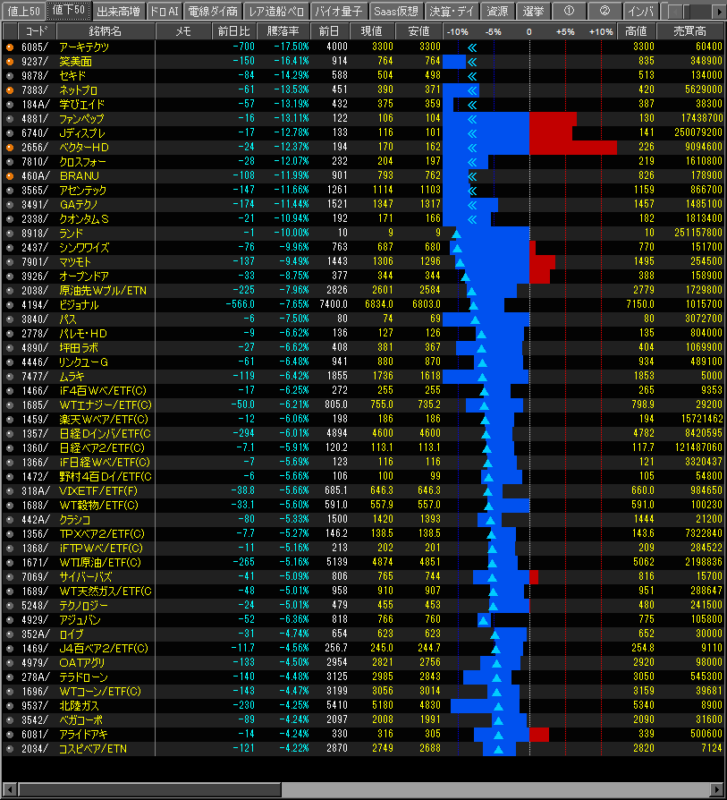 値下がり率ランキング