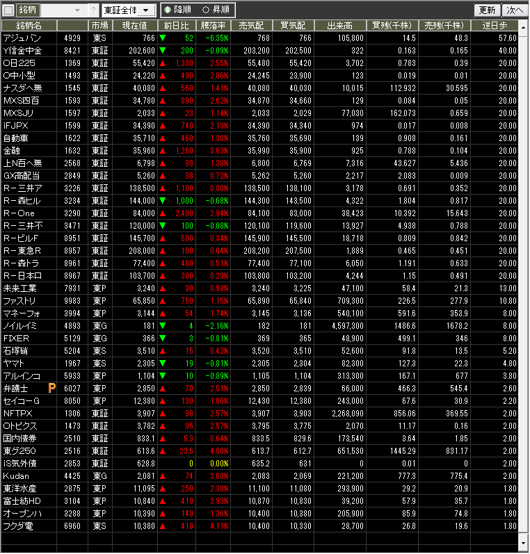 出来高急増ランキング