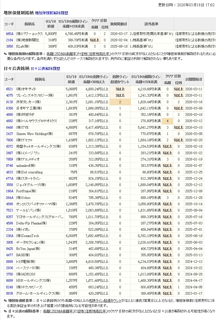 増し担保解除ライン&日々公表