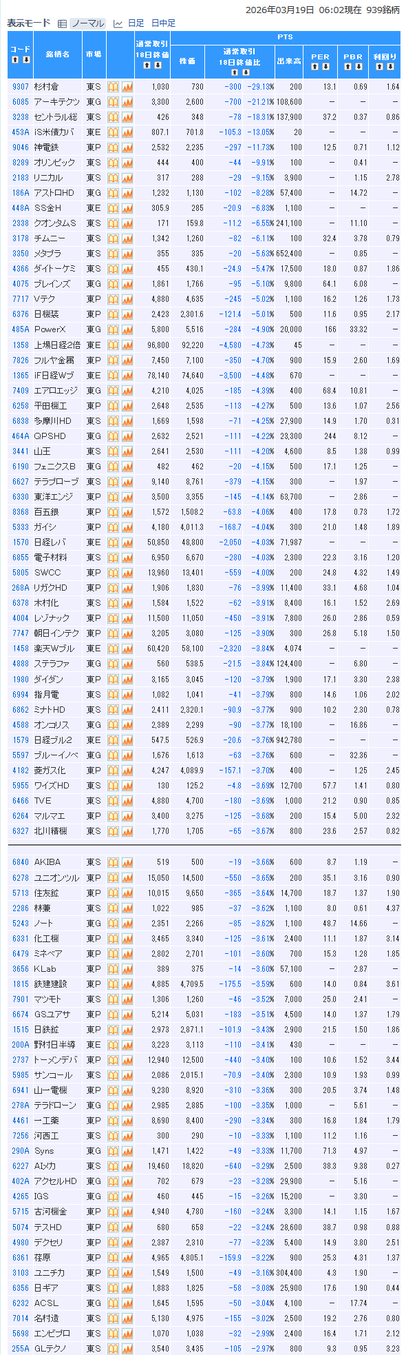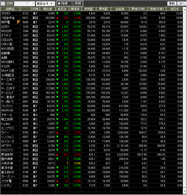 値下がり率ランキング