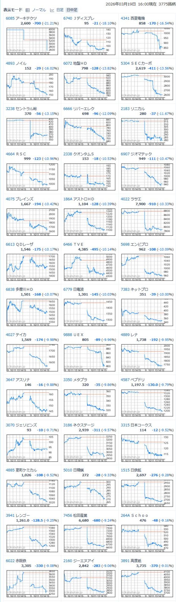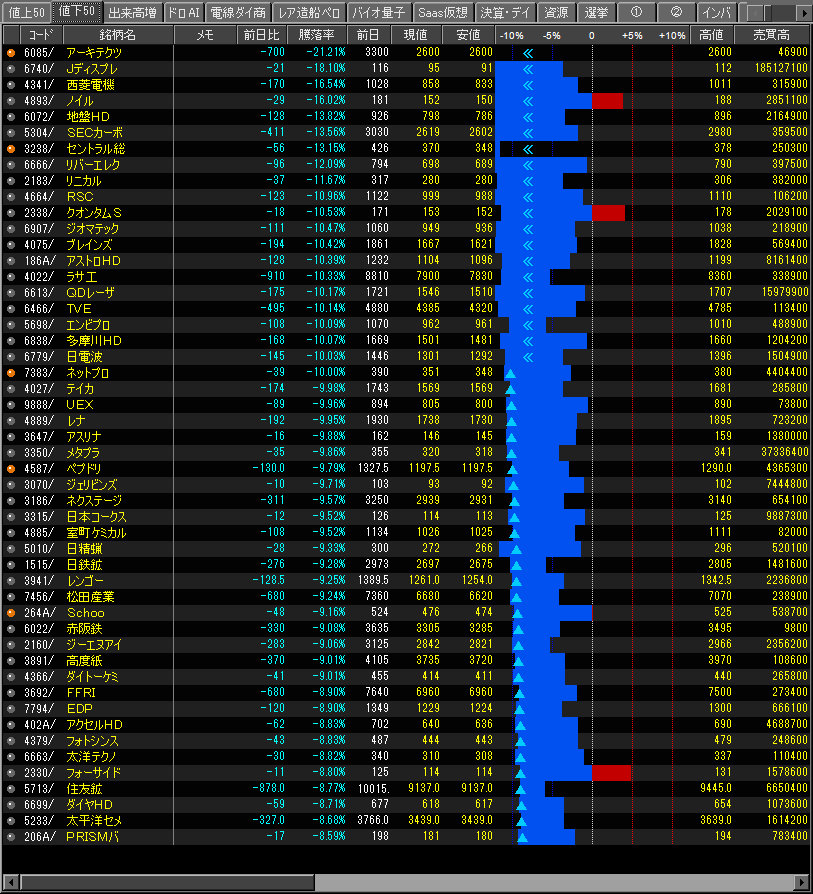 これまでの上げはなんやったのかっていうくらい激弱銘柄に降格