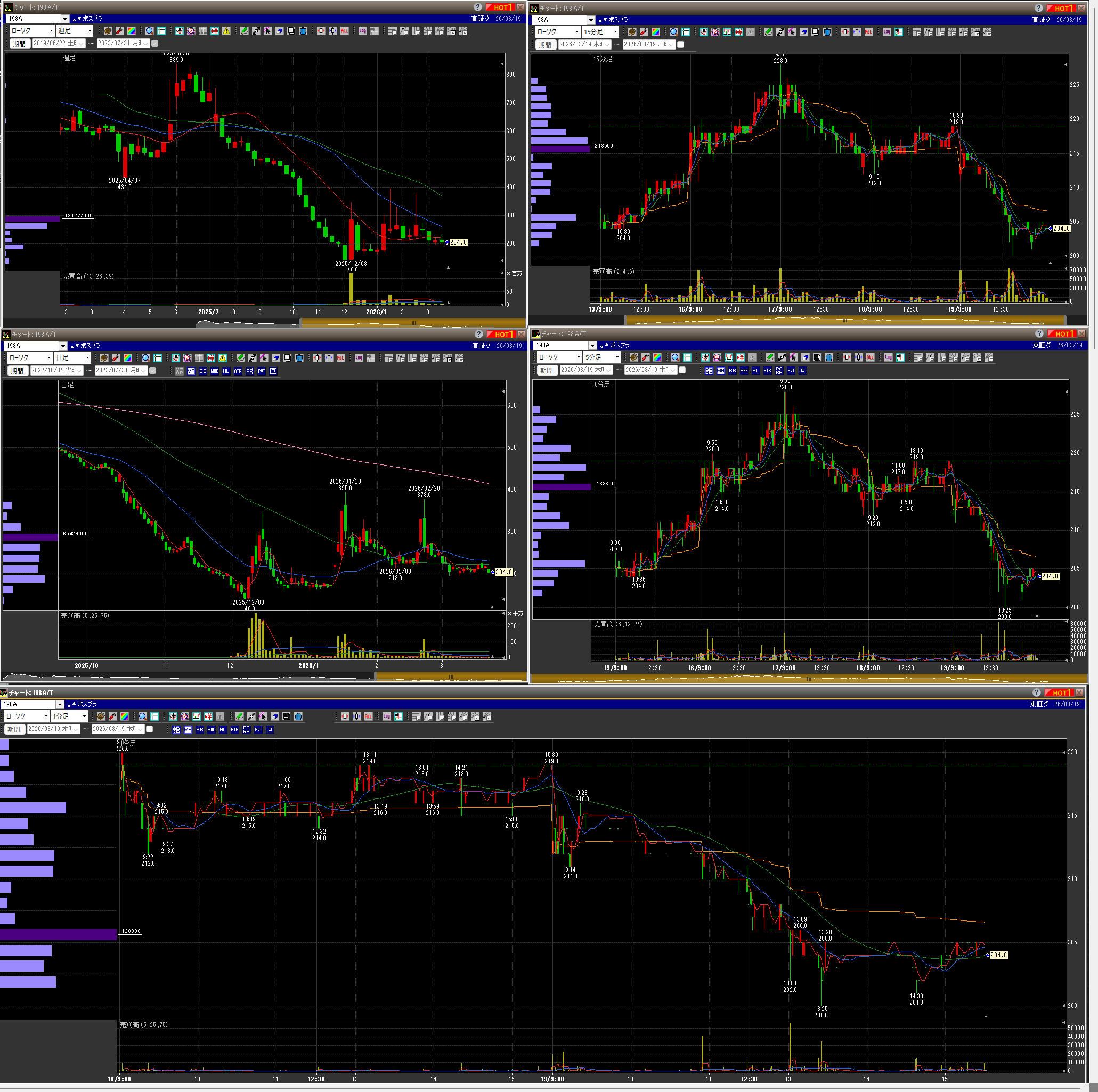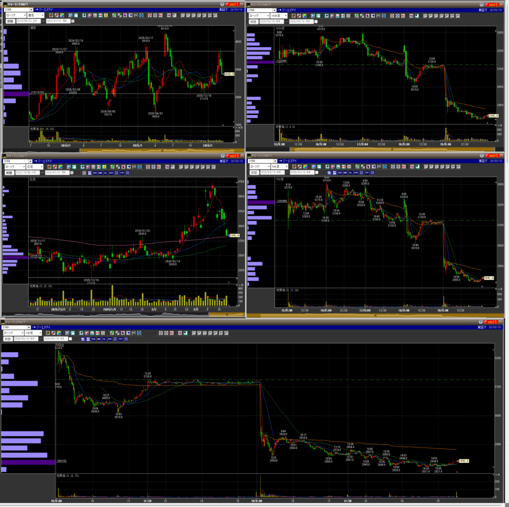 昨日、引け間際に下で買いなおせたーって思ってたら、チャートも崩れてぼっこぼこ