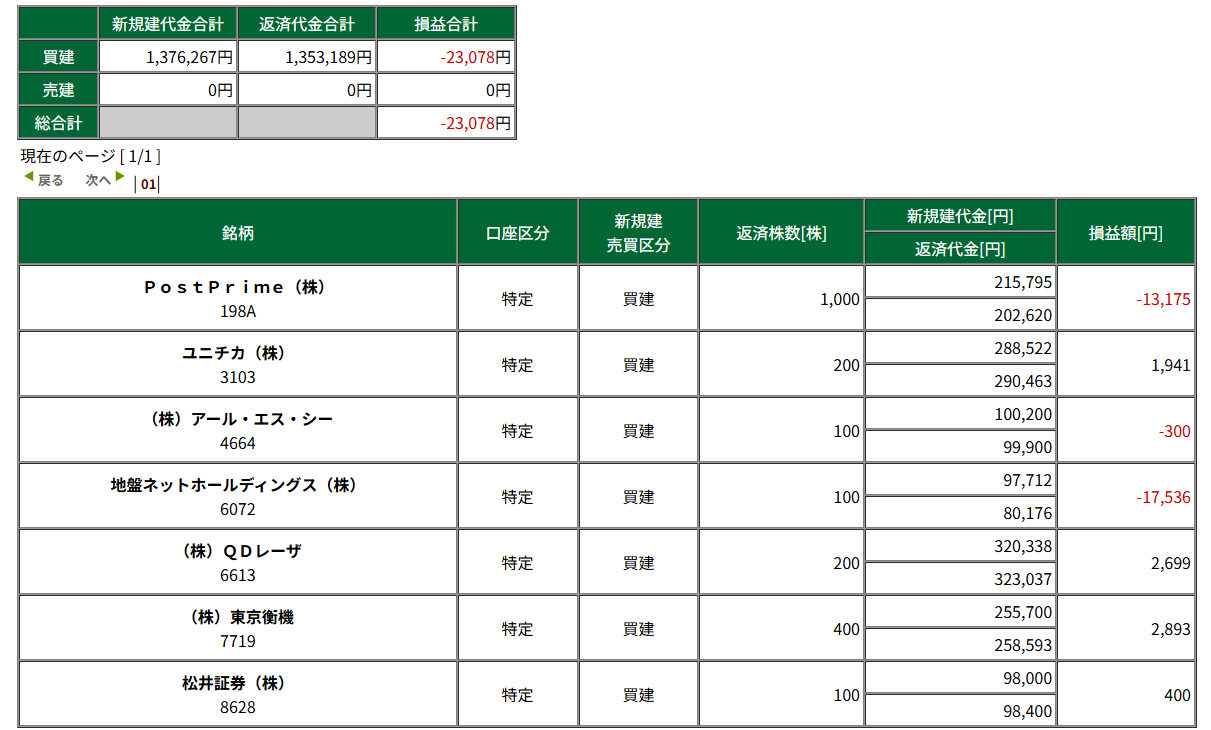 昨日まで含み益でしたが含み損に・・・やはり今は回転が正義