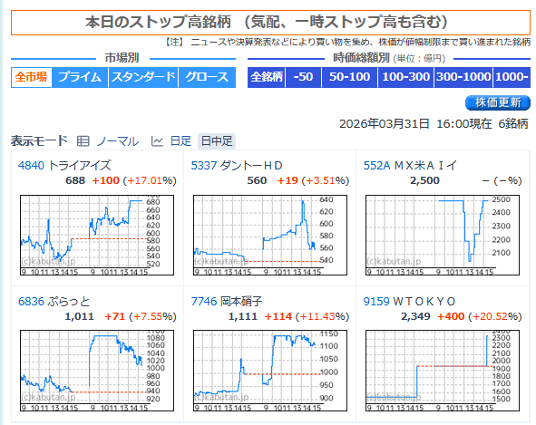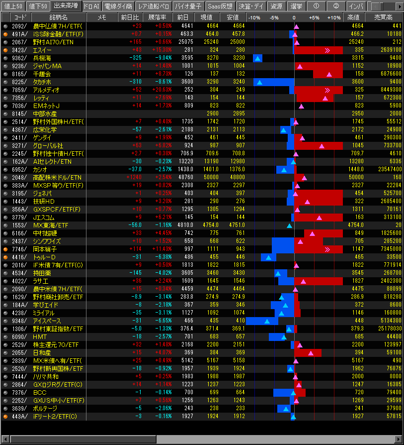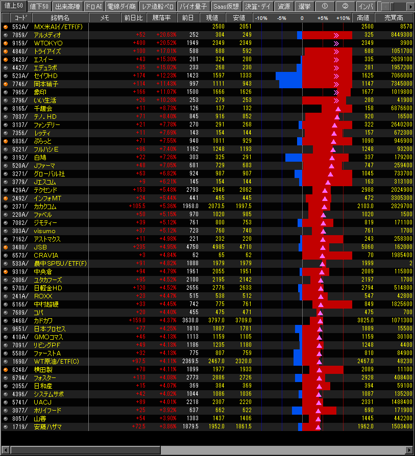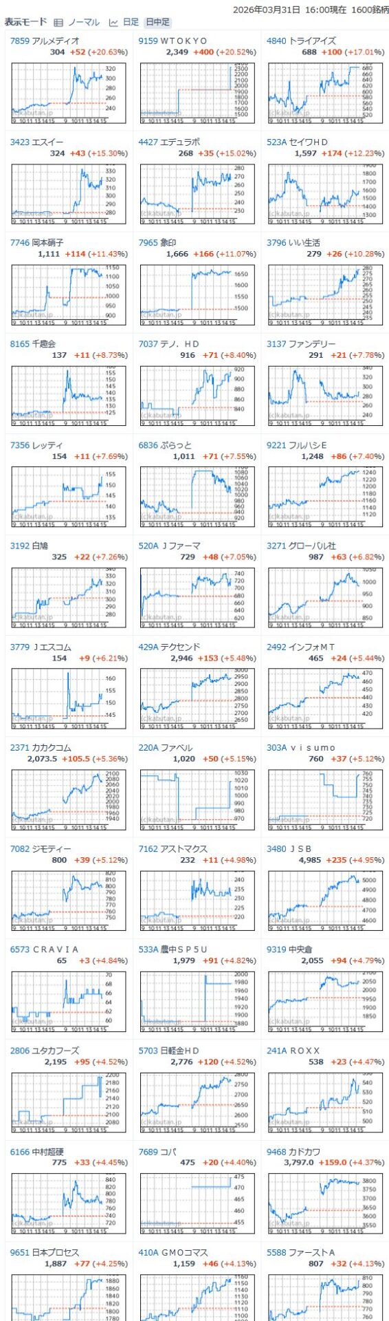 スターマイカHD、日プロセス、YEDIGIT、ヤマシタヘルケア、インテG、クラウディアH、テクノアルファ