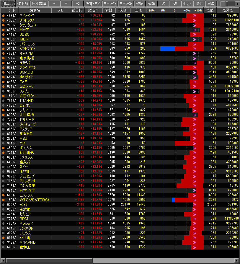 ストップ高からの翌日GU狙いでしたが、何度も数パーセントの下げに心を折られて薄利撤退
