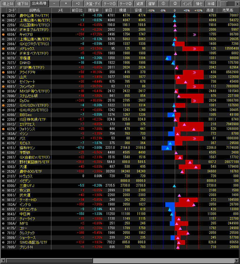 他の銘柄の売り買いが一巡後に高値トライしてきた模様