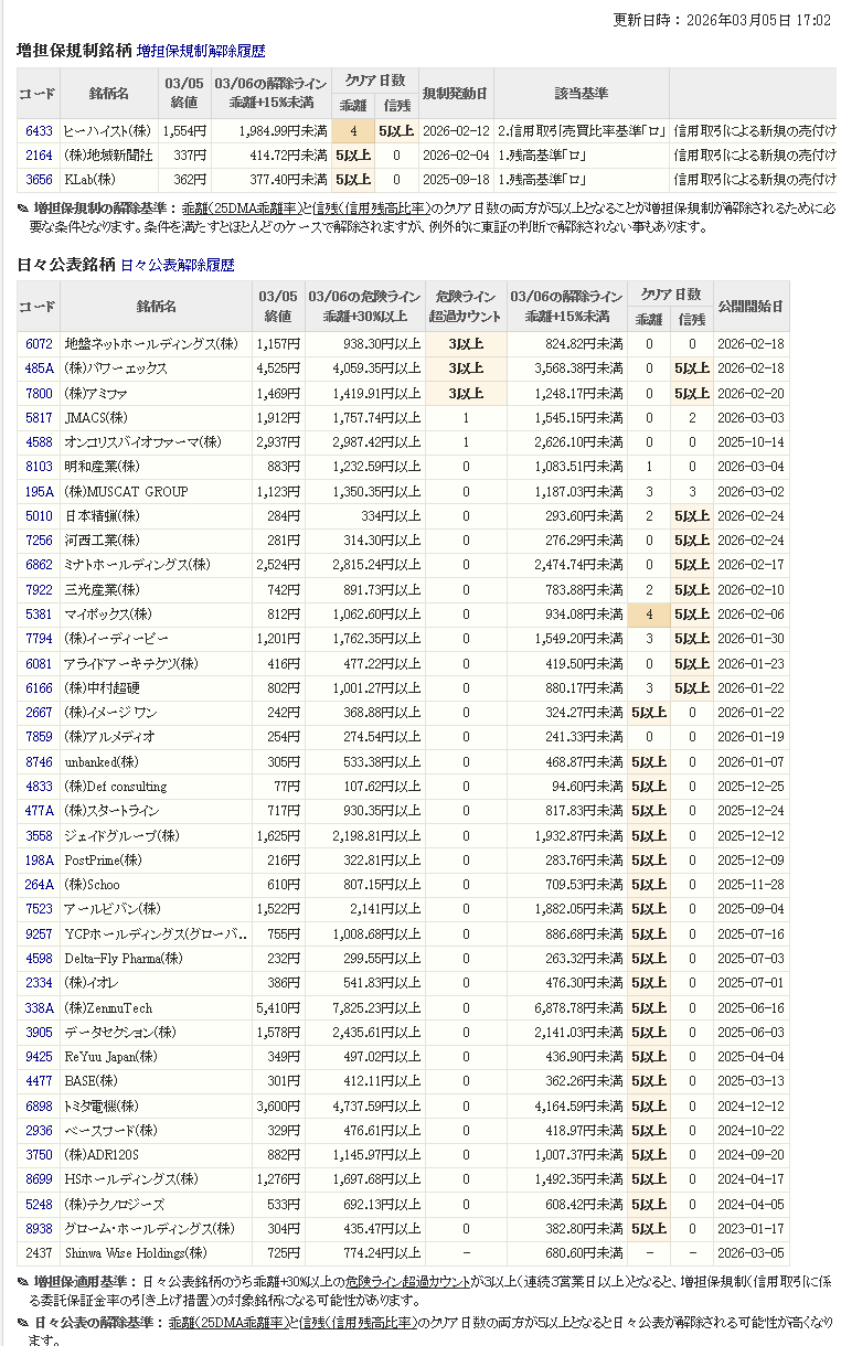 増し担保解除ライン&日々公表
