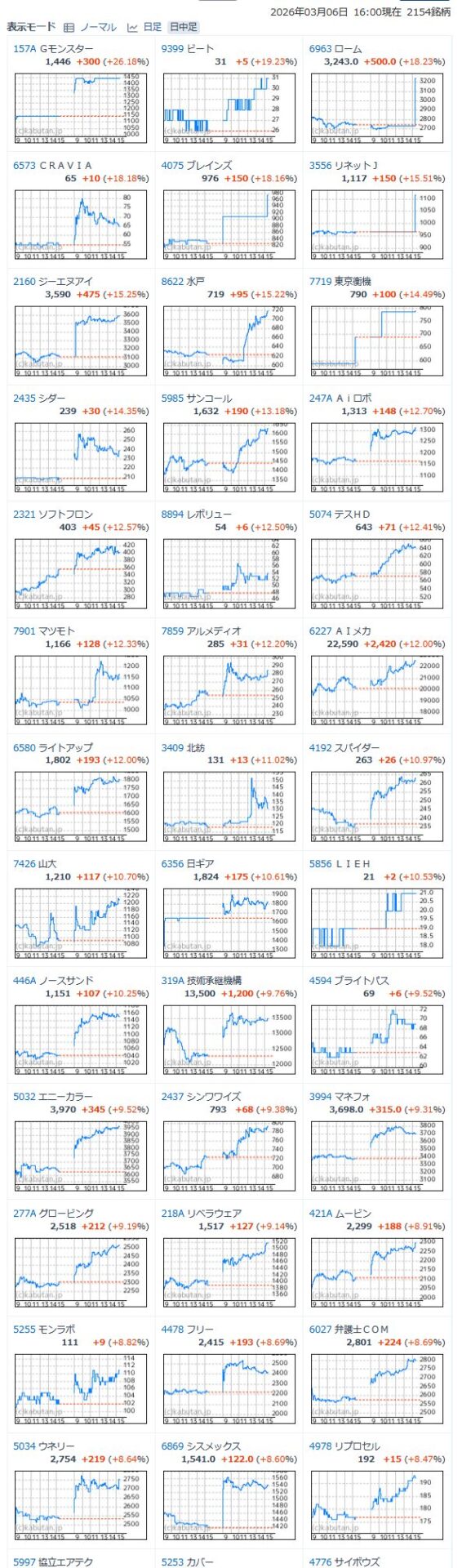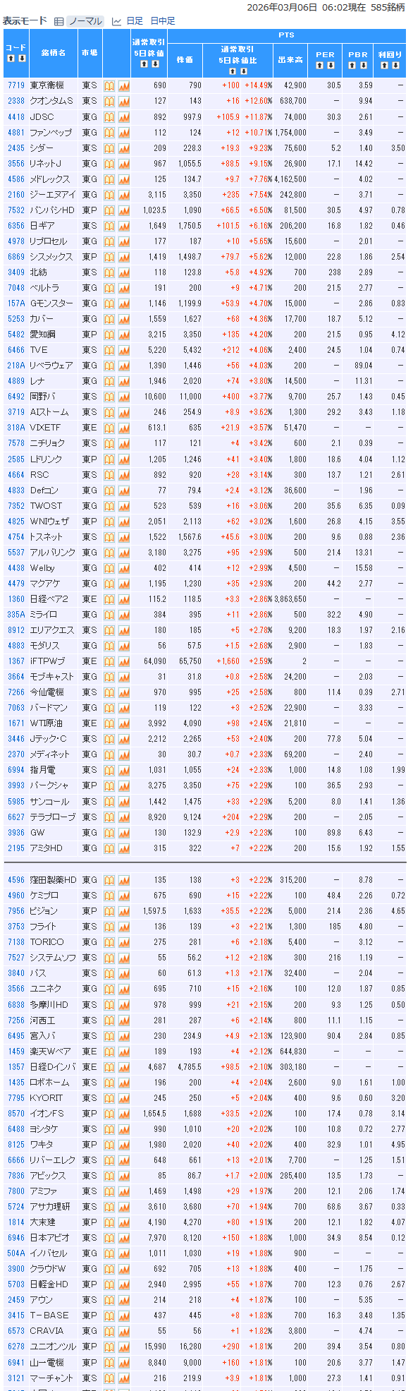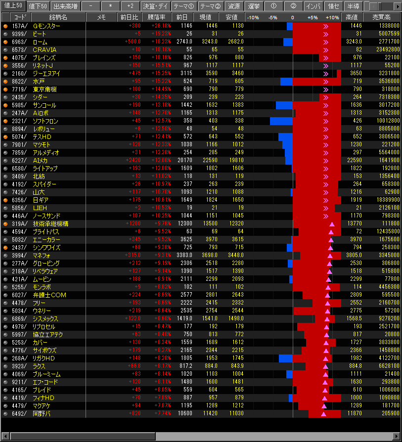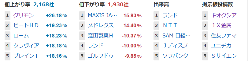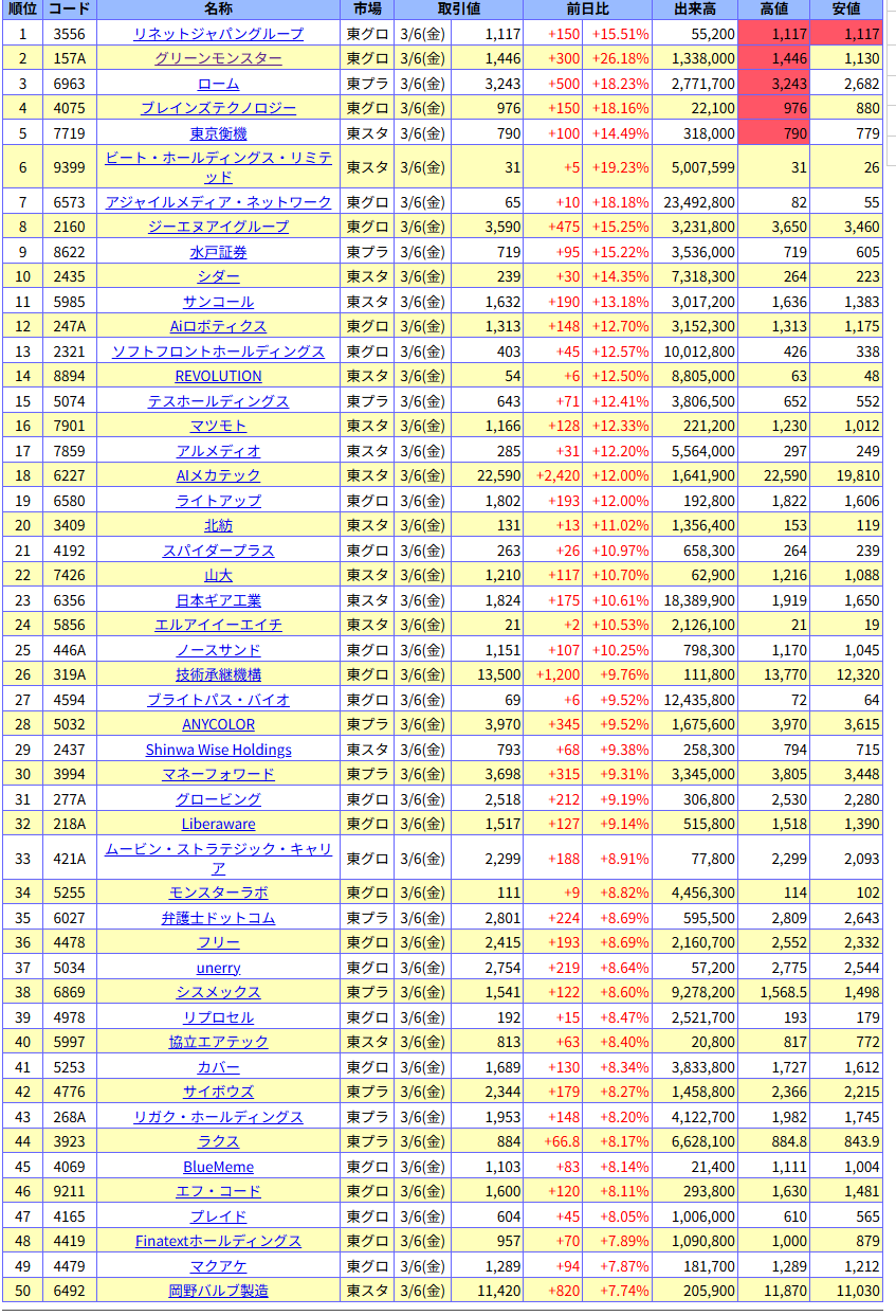 値上がり率ランキング