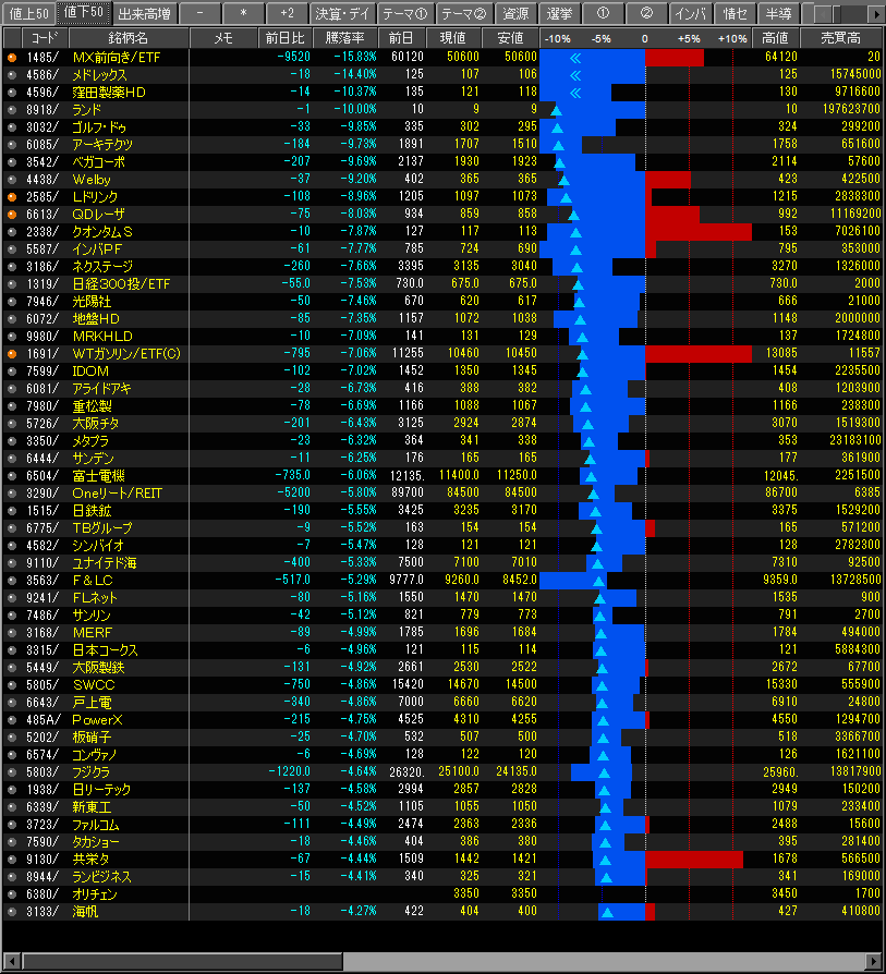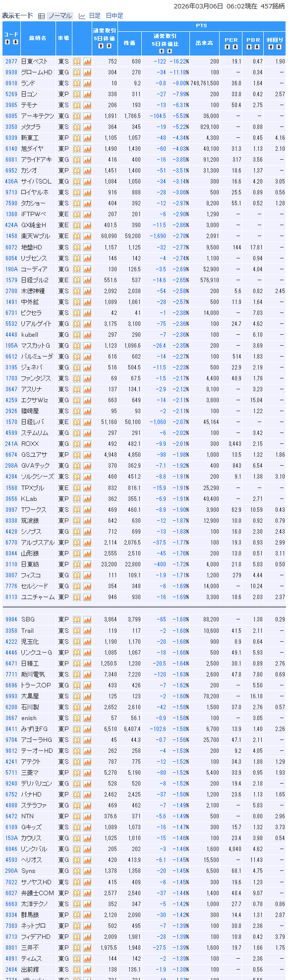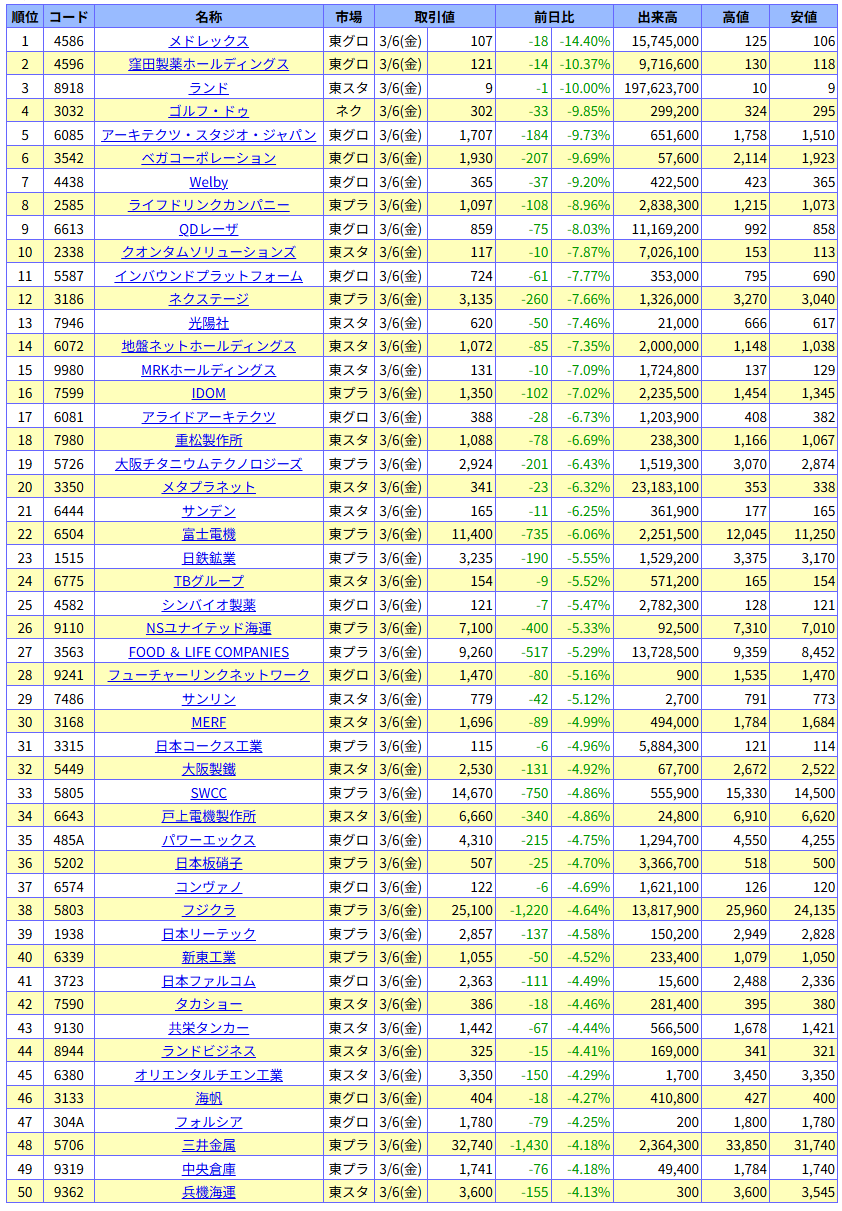 値下がり率ランキング