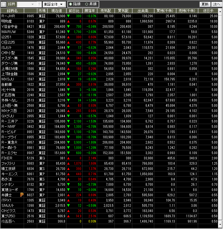 当日値上がり数/値下がり数