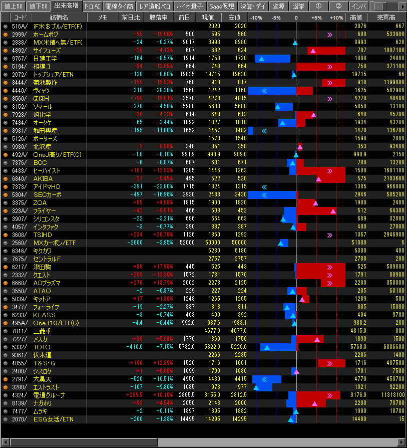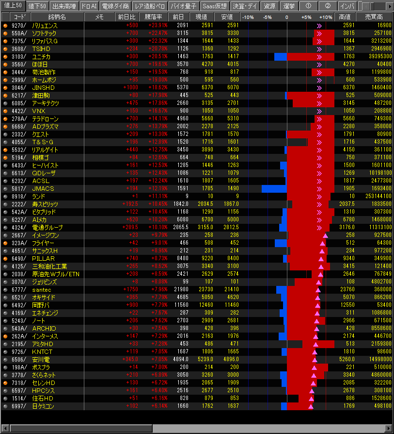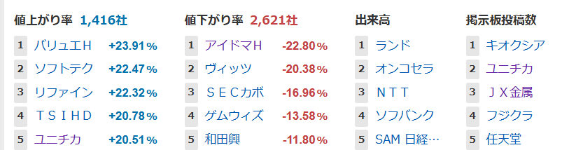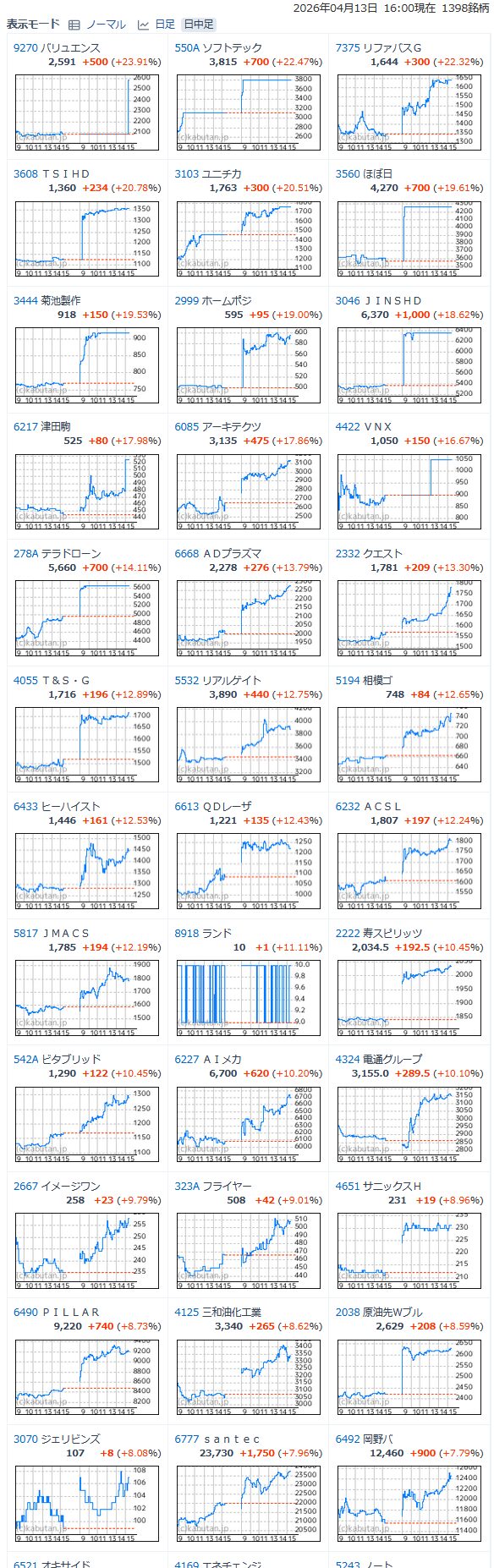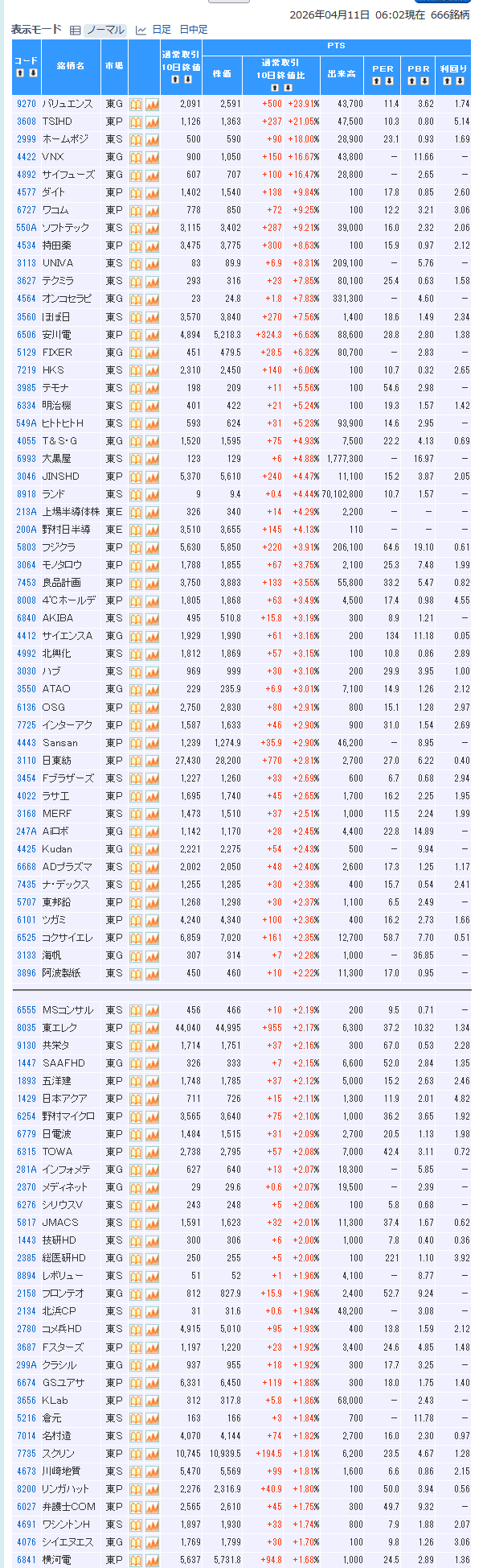 コスモス薬品、久光薬、U-NEXT、アークス、コーナン商事、IDOM、QPSHD、カーブスHD、リテールPT、歌舞伎、CSP、ブックオフGH、ライク、イージェイHD、PRTIMES、メディアドゥ、銚子丸、東洋電、タキヒヨー、アステナHD、MERF、ククレブ、ミクロン精密、ギークリー、ELEMENTS、OlympicG、JESCOHD、ハブ、プロパスト、ライズ、TONE、天満屋ス、No.1、エムビーエス、インテリックスH、ジェーソン、ARアドバン、オータケ、ポエック、ソーバル、識学、ココナラ、チームスピリト、ヴィッツ、ビタブリット