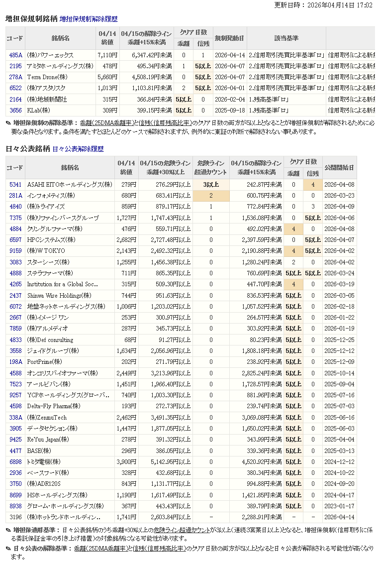 増し担保解除ライン&日々公表