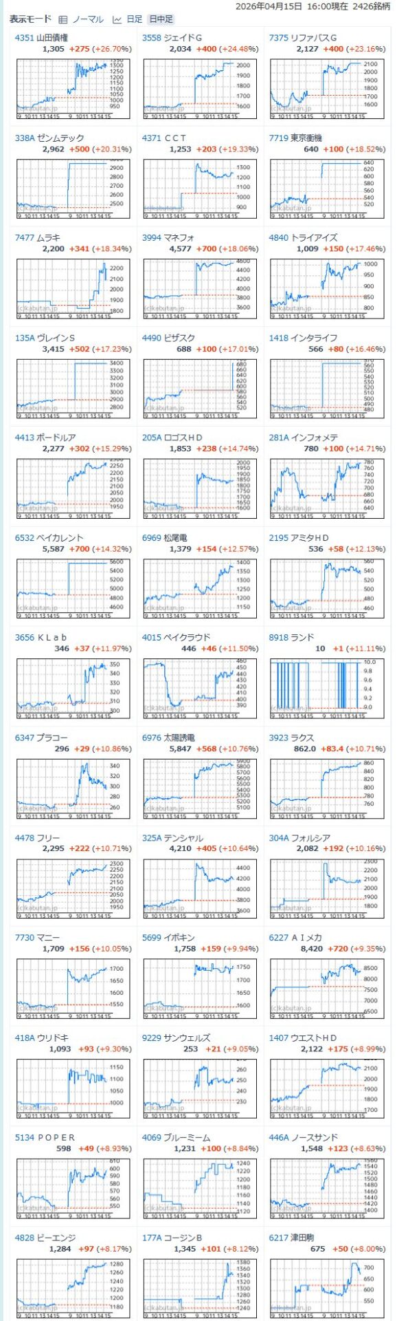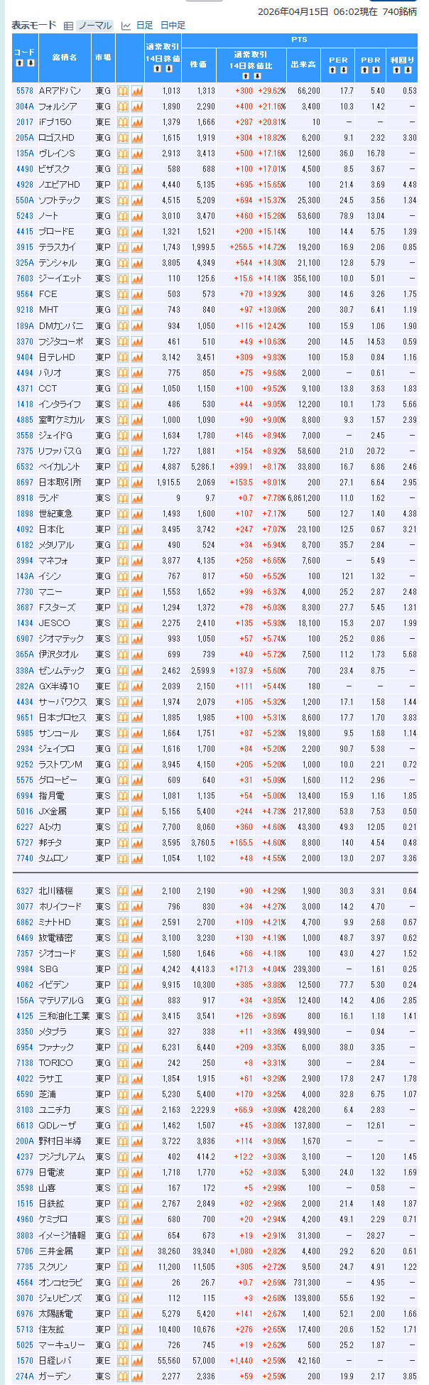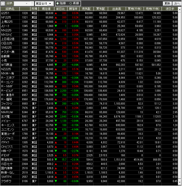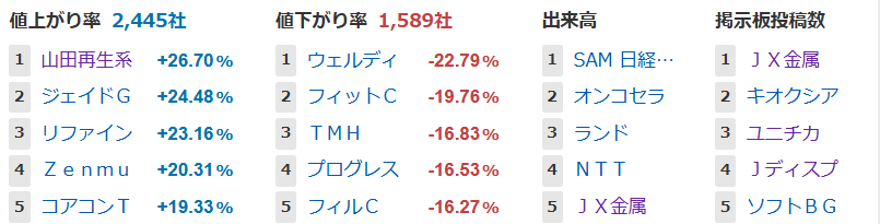 値上がり率ランキング