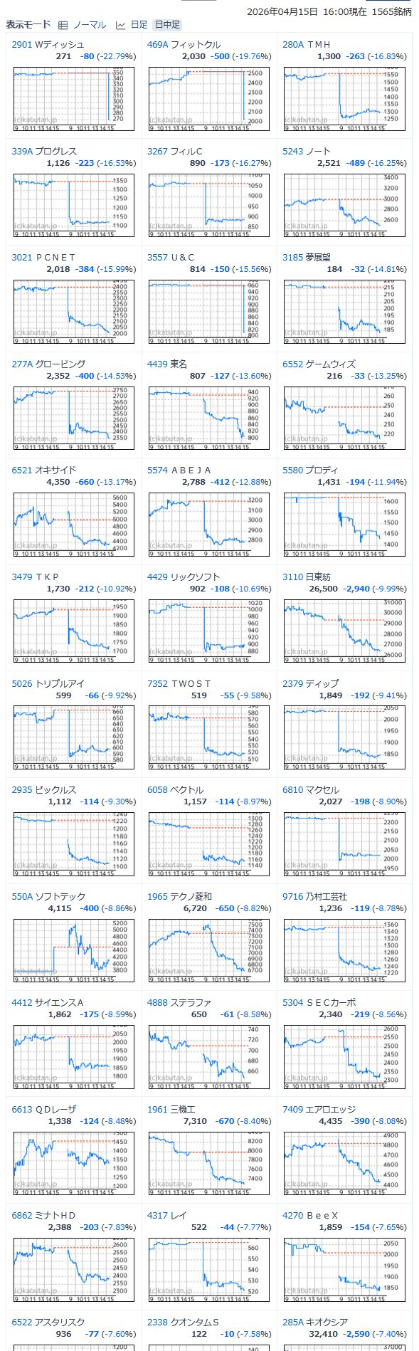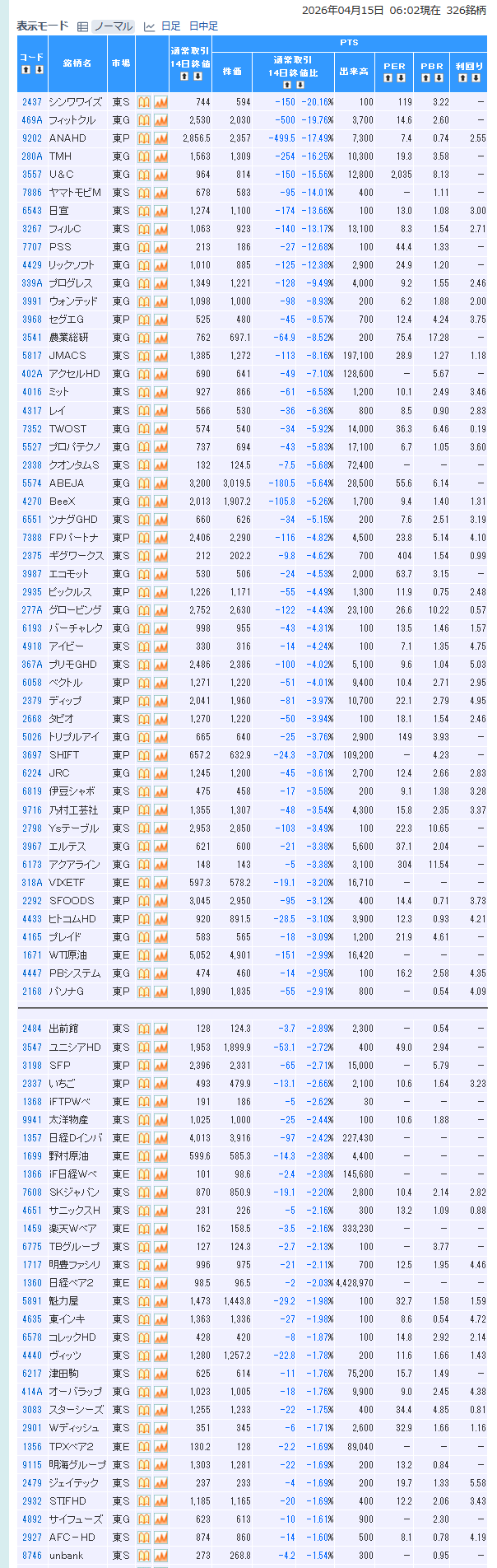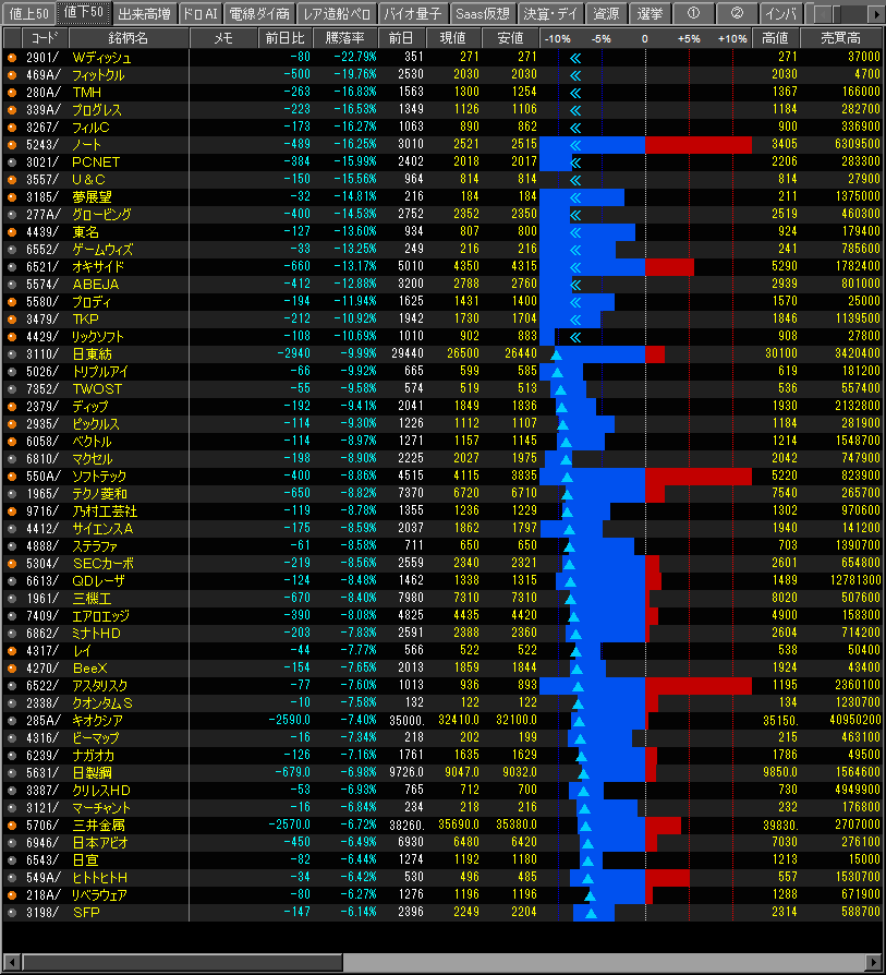 値下がり率ランキング