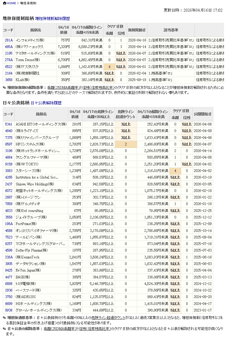 増し担保解除ライン&日々公表