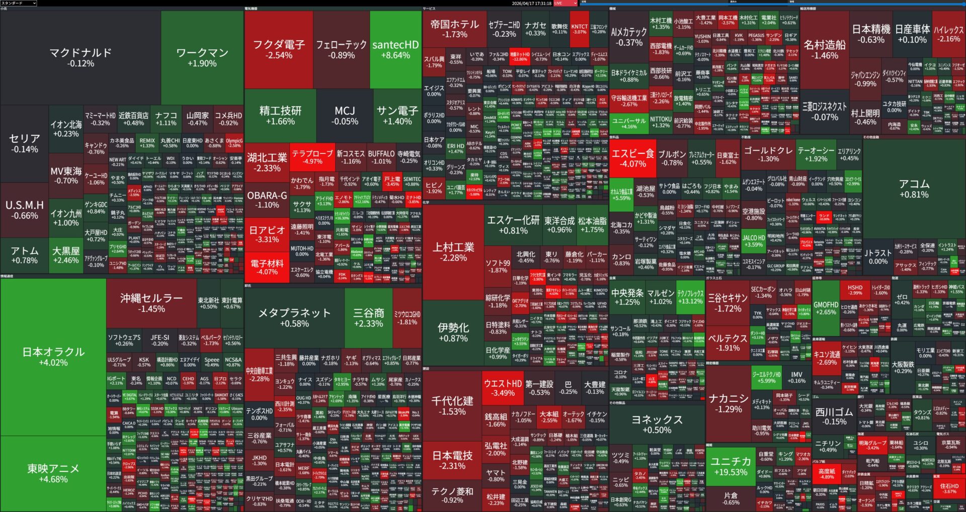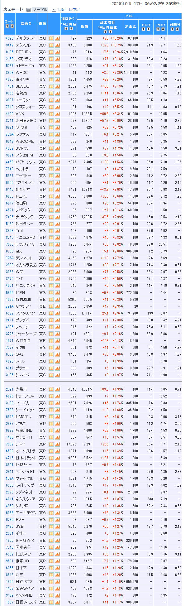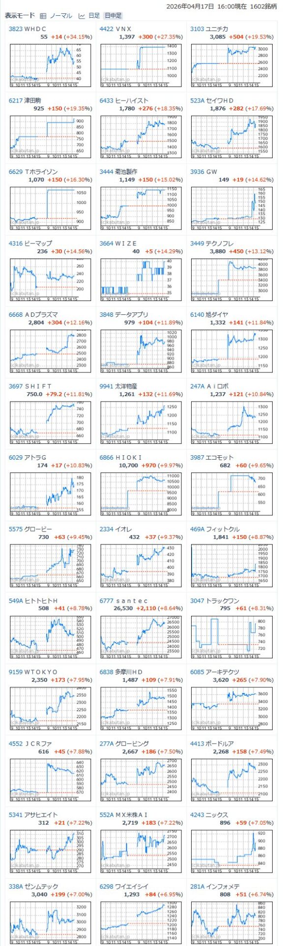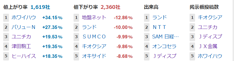 値上がり率ランキング