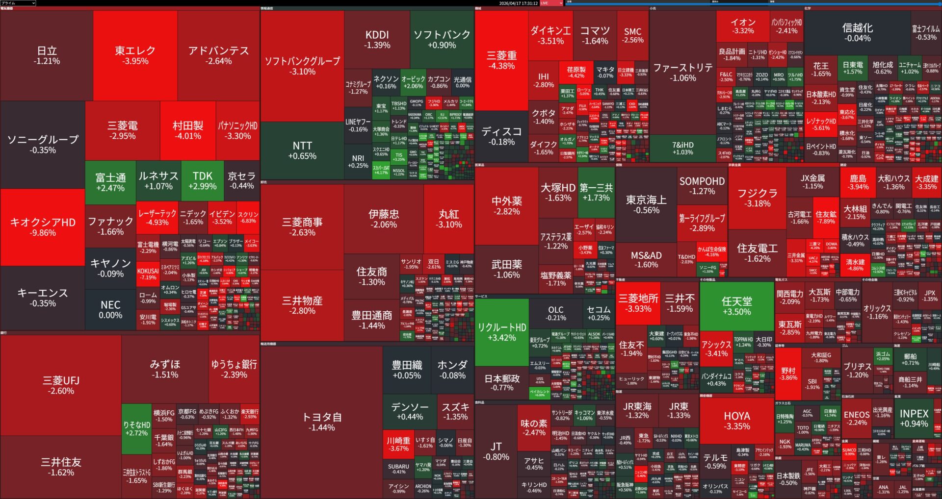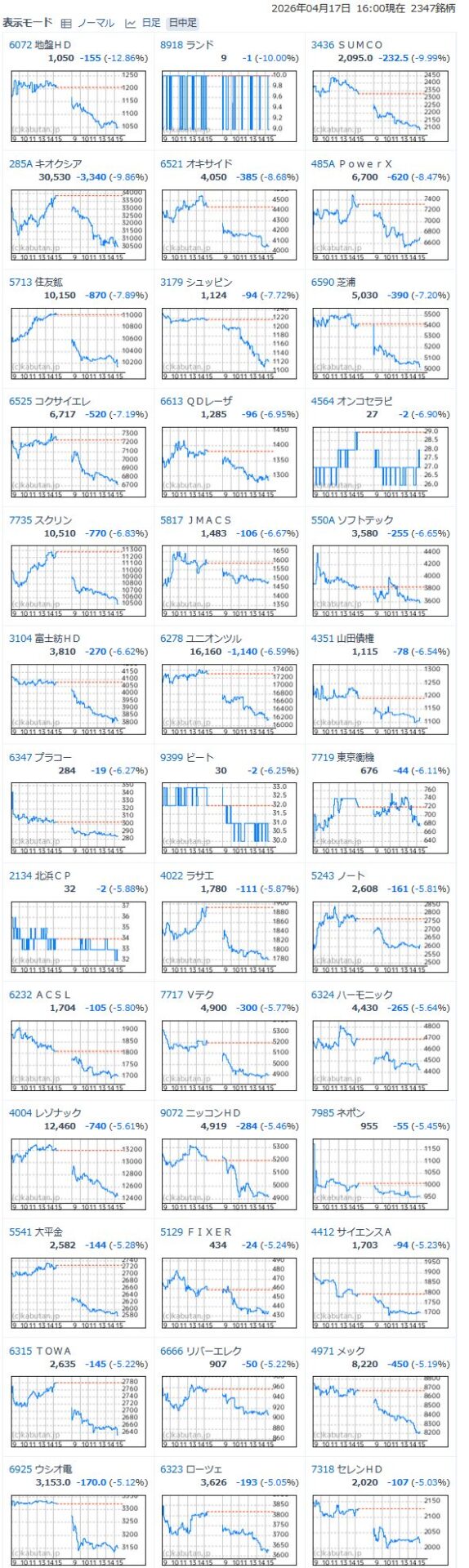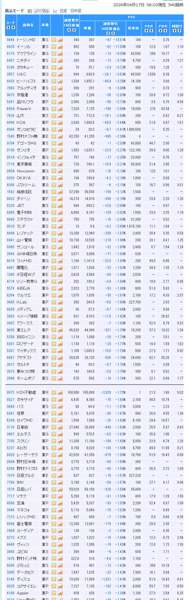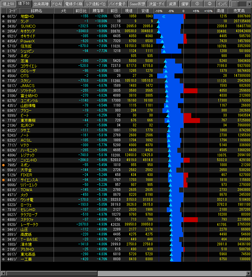 値下がり率ランキング