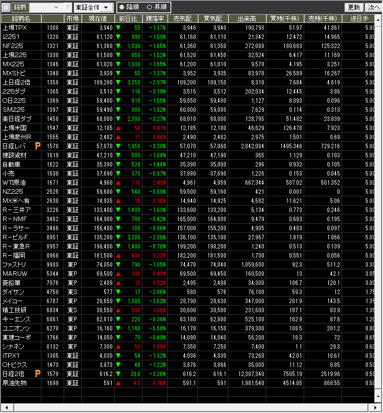 当日のザラ場指数