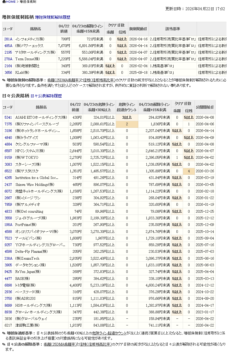 増し担保解除ライン&日々公表