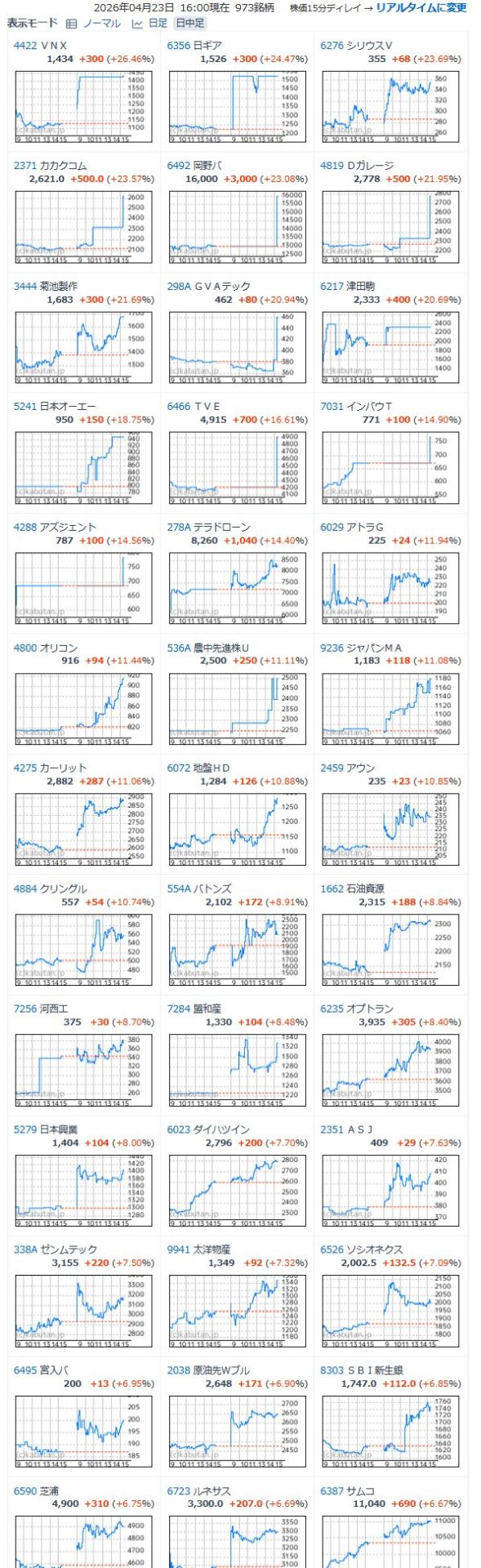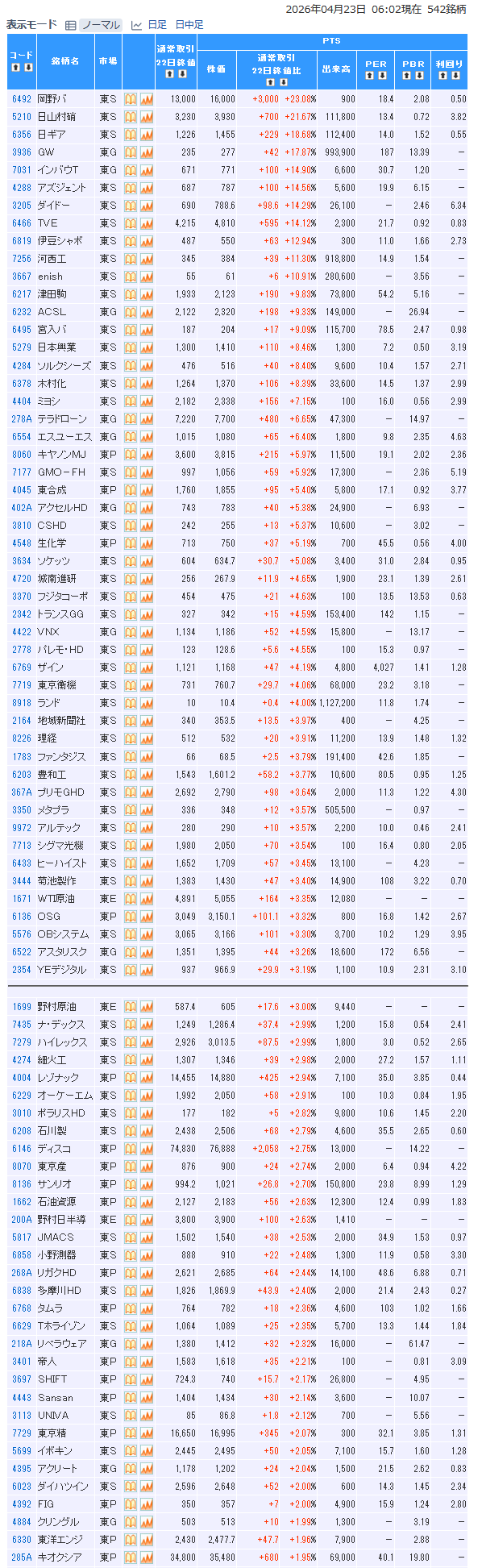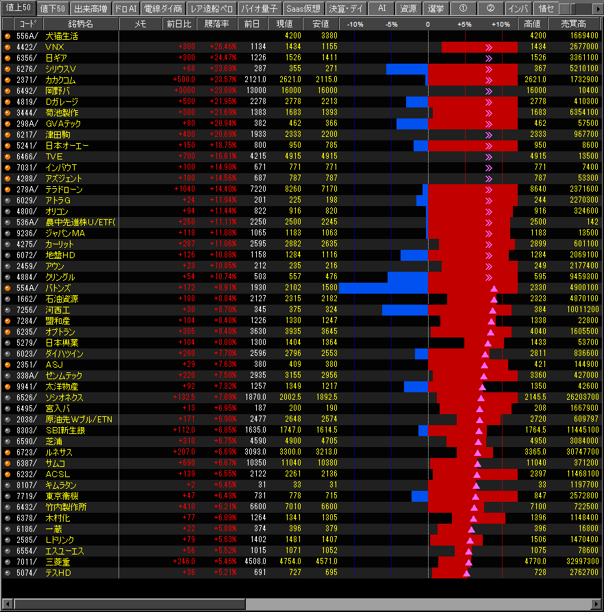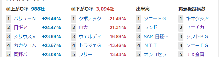 値上がり率ランキング