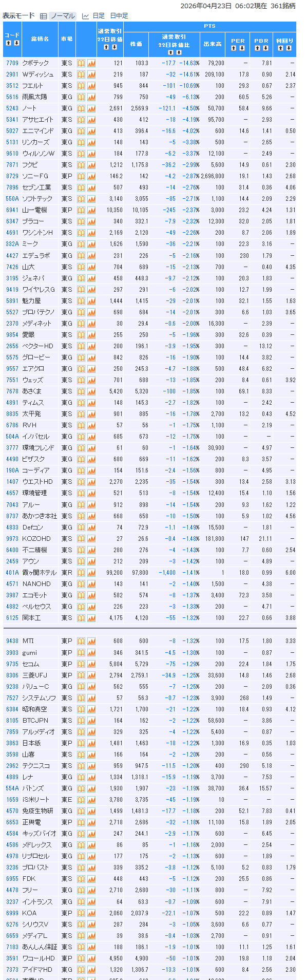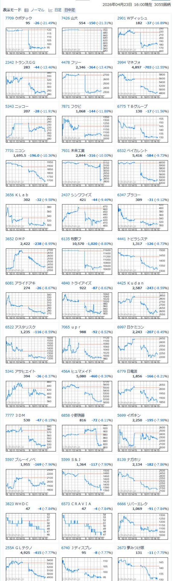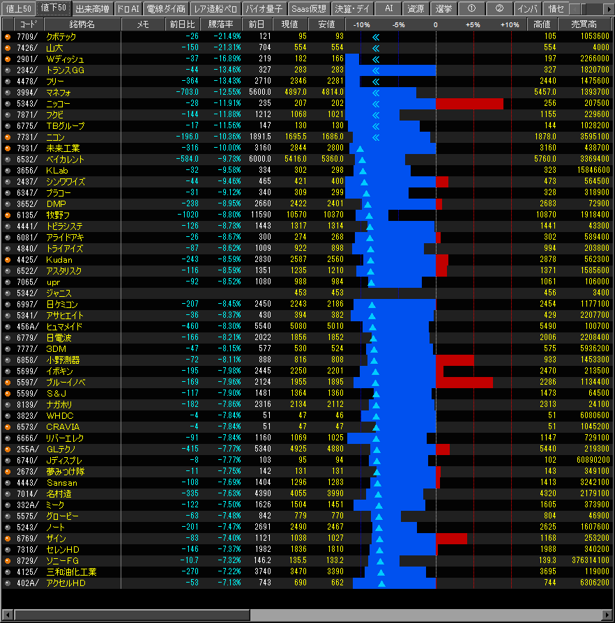 値下がり率ランキング