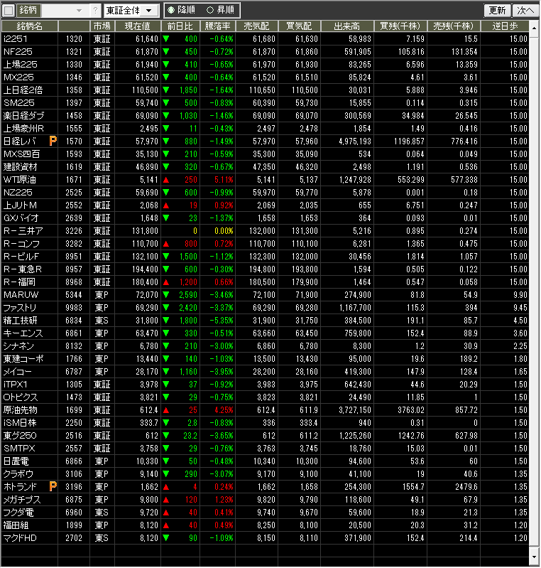 当日のザラ場指数