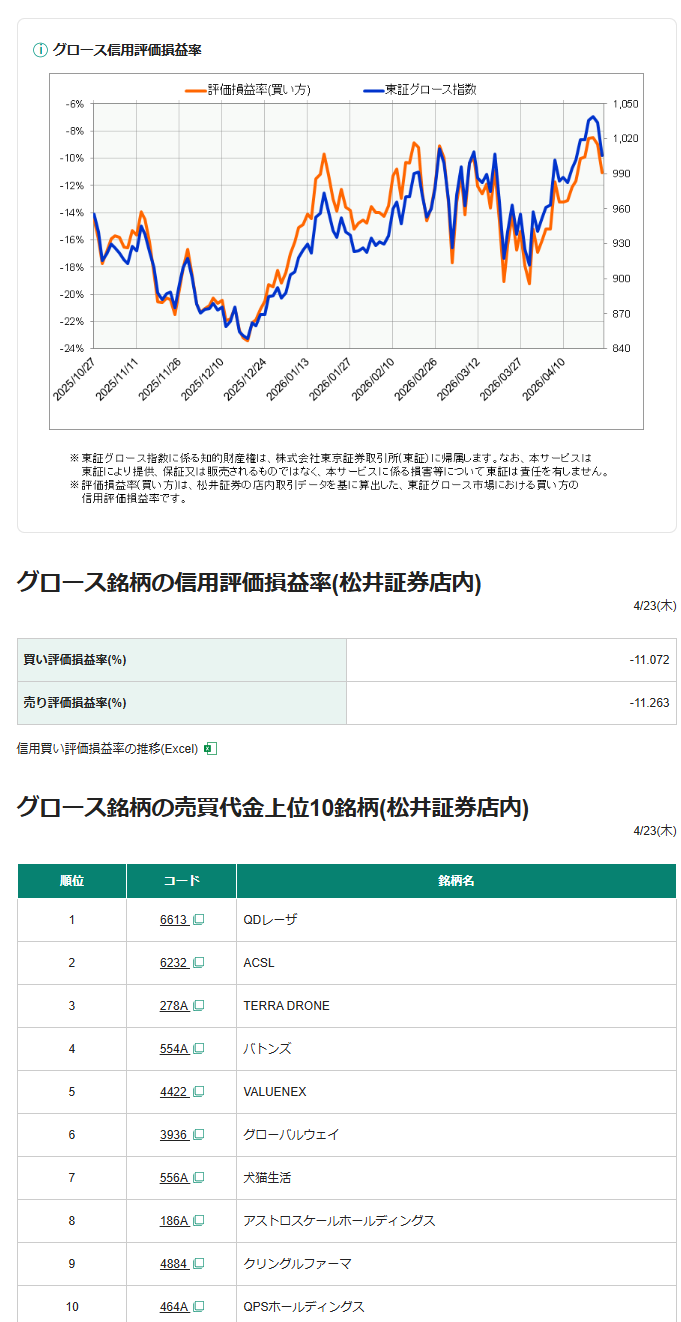 グロース信用評価損益率