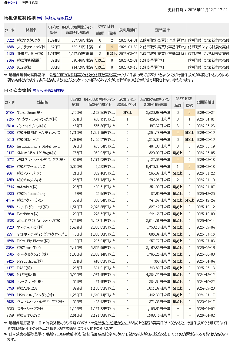 増し担保解除ライン&日々公表