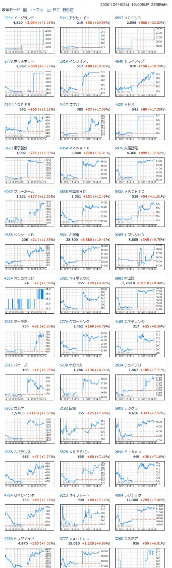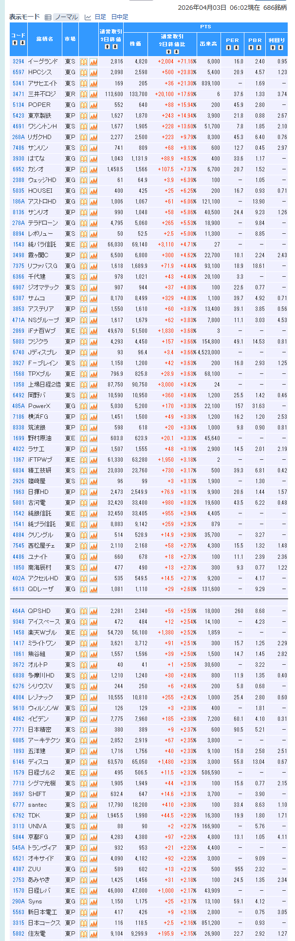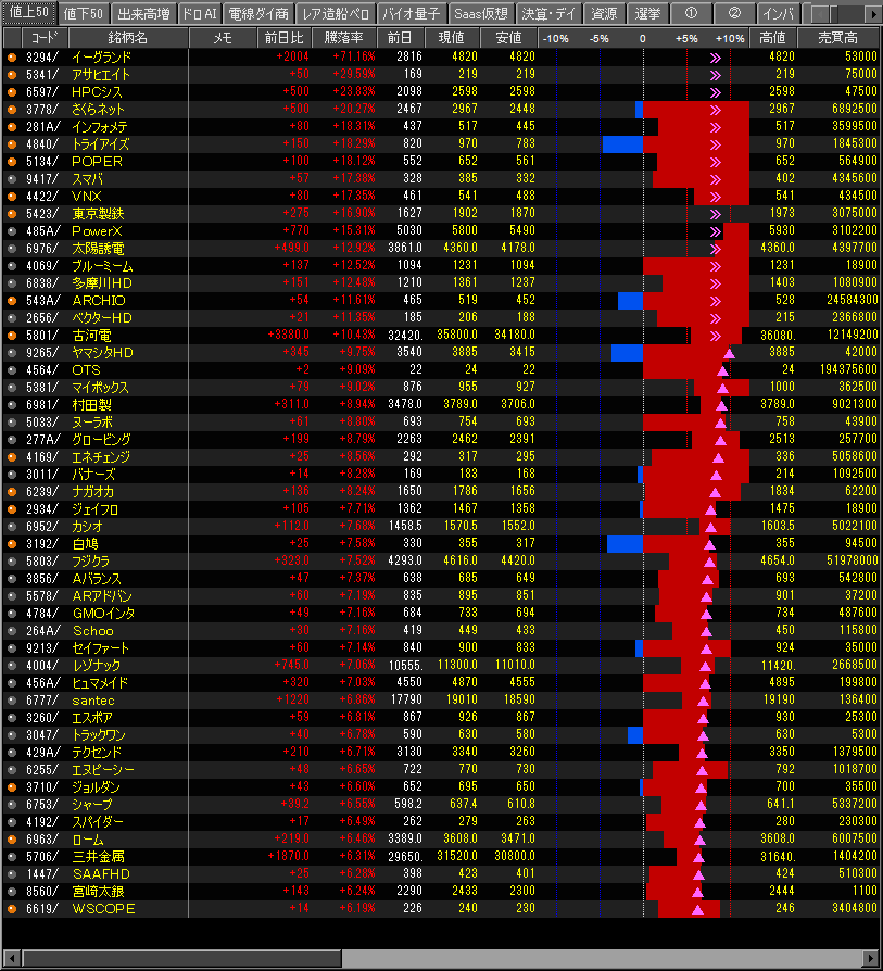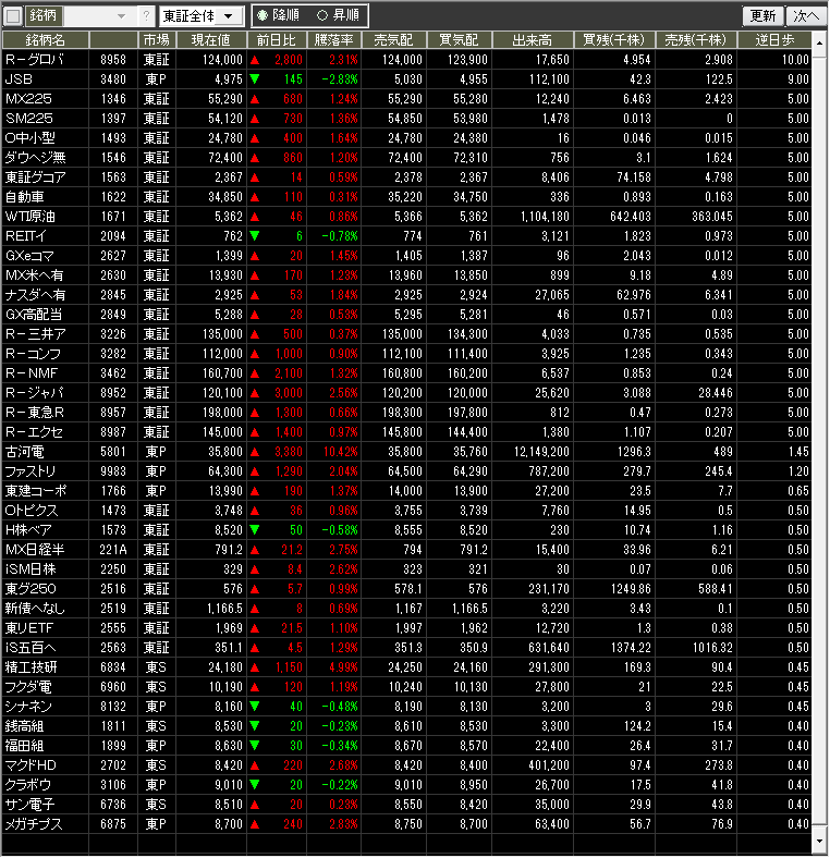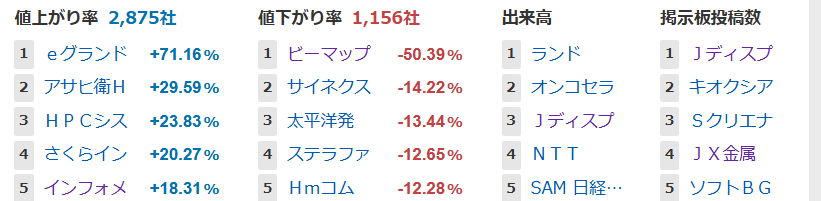 値上がり率ランキング