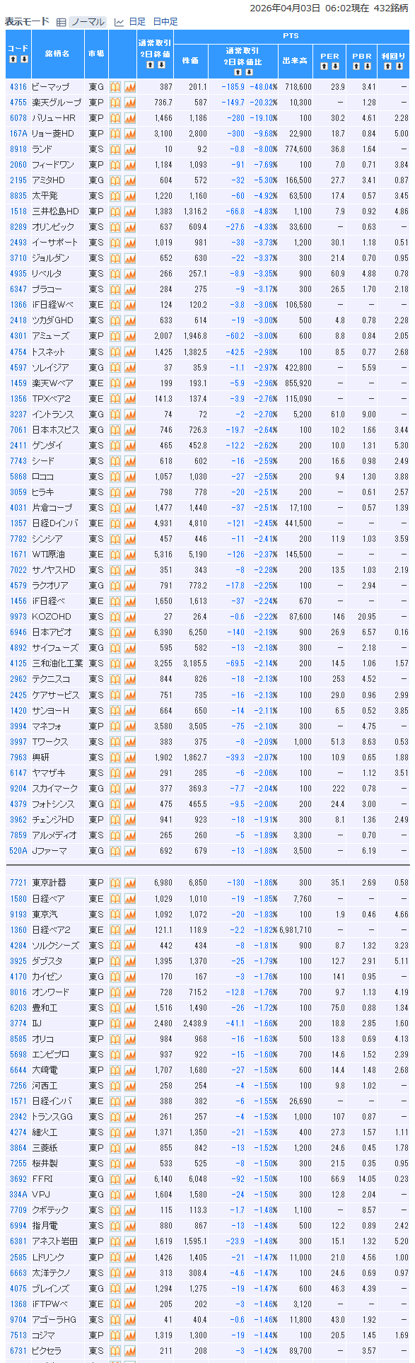 前日pts