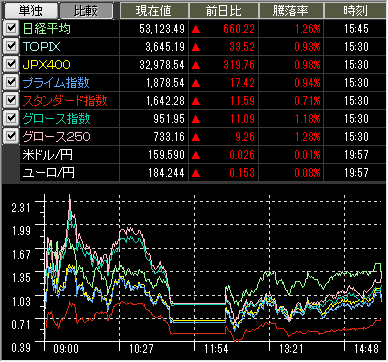 当日値上がり数/値下がり数