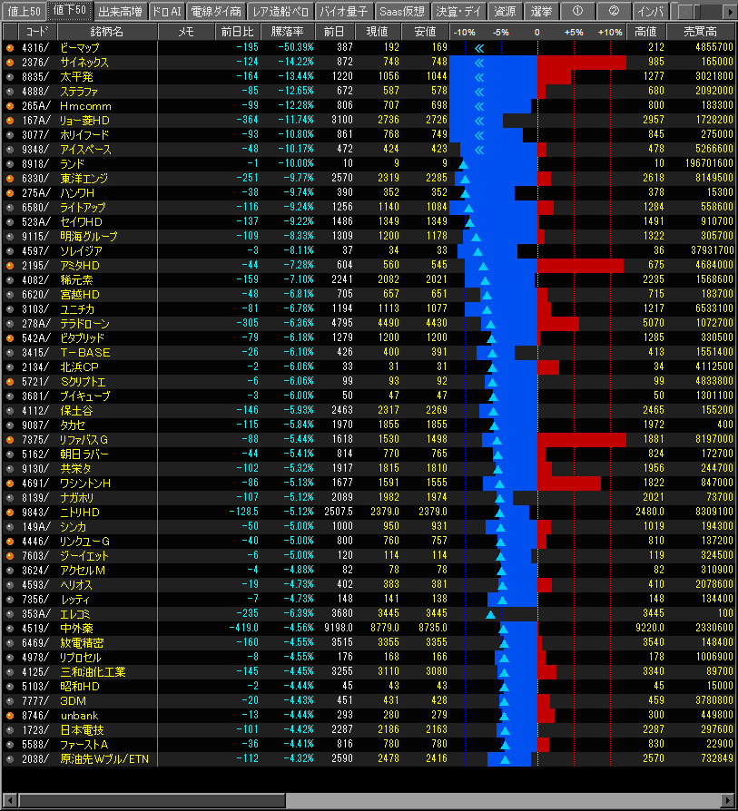 値下がり率ランキング