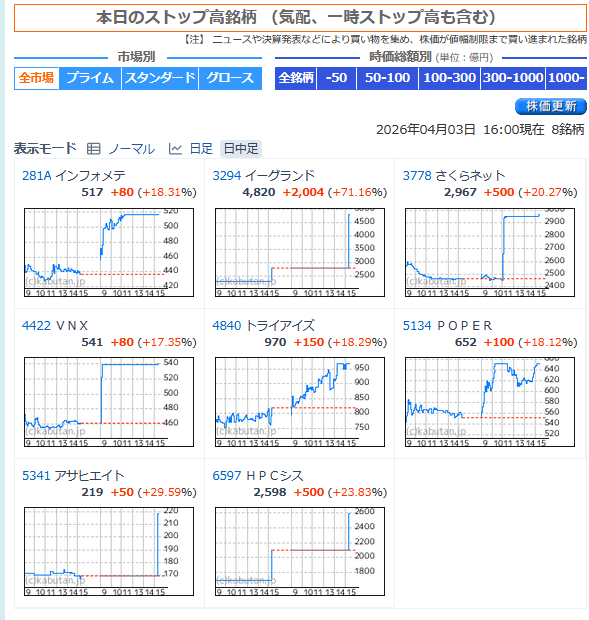 ストップ高