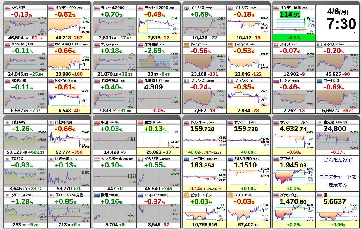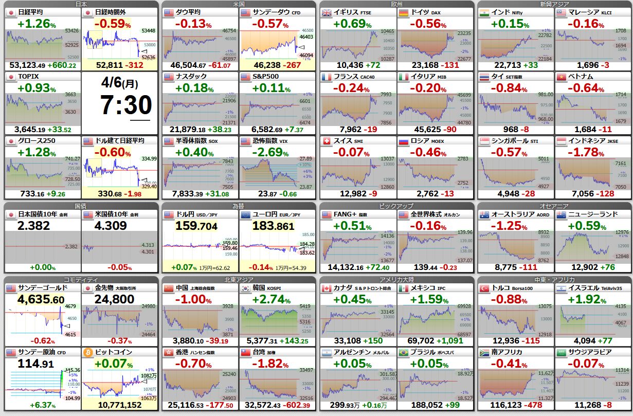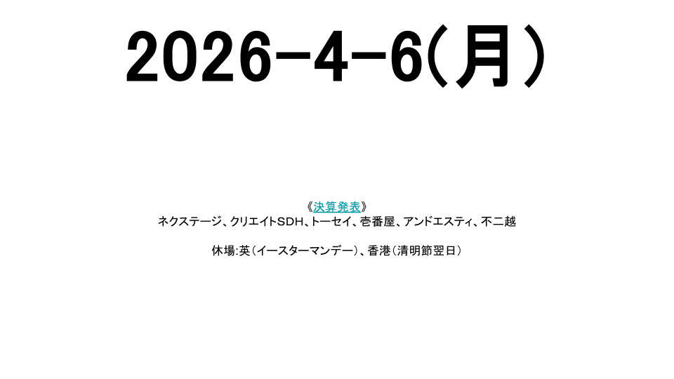 休場:英(イースターマンデー)、香港(清明節翌日)