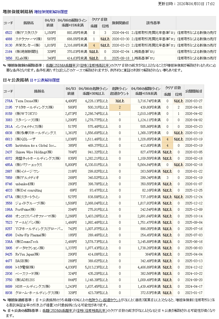 増し担保解除ライン&日々公表