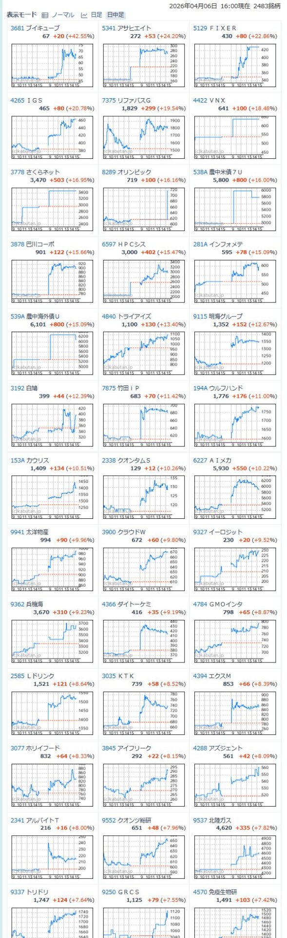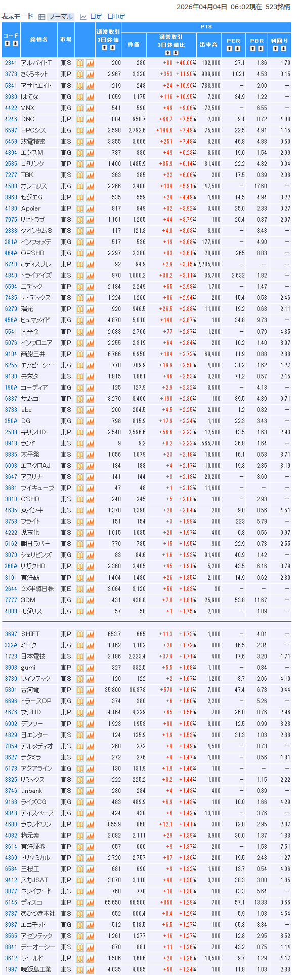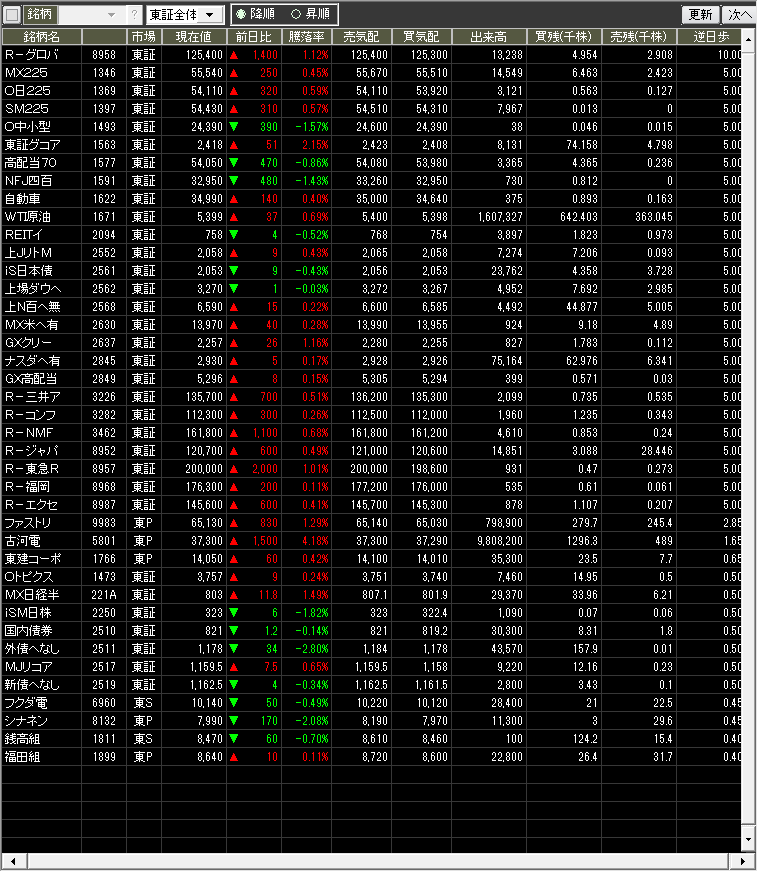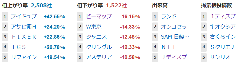値上がり率ランキング