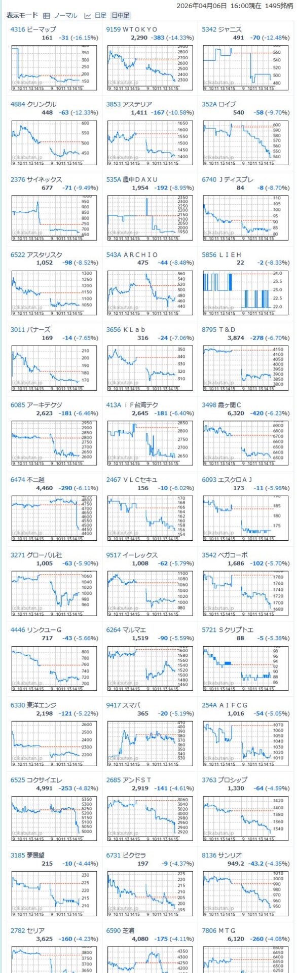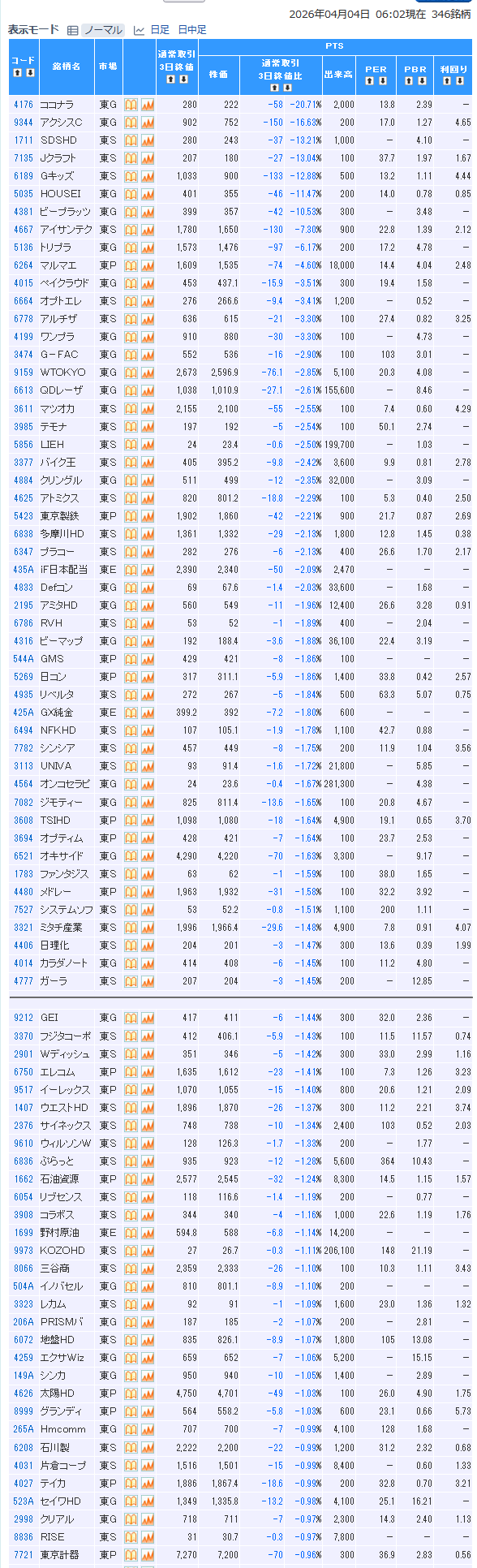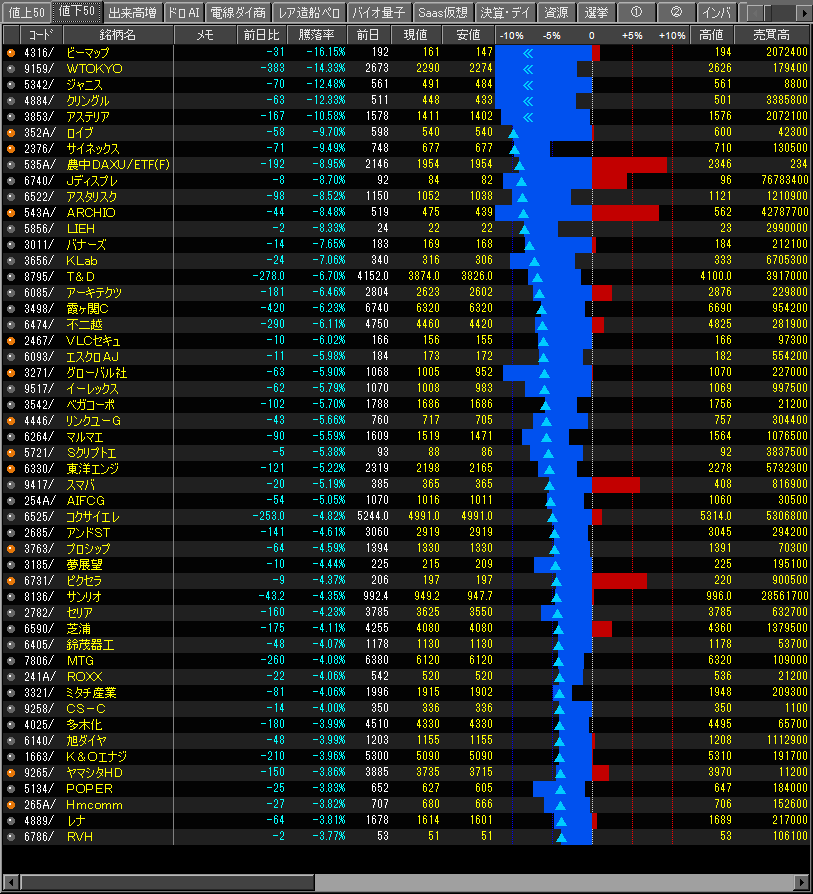 値下がり率ランキング