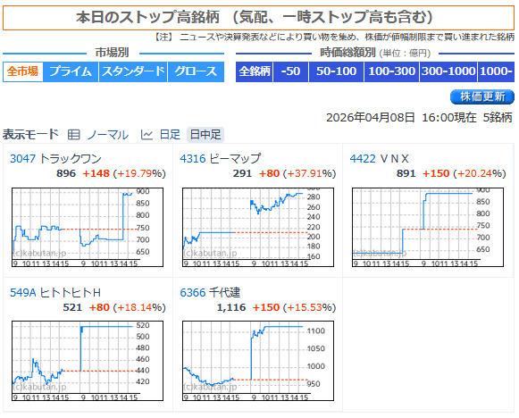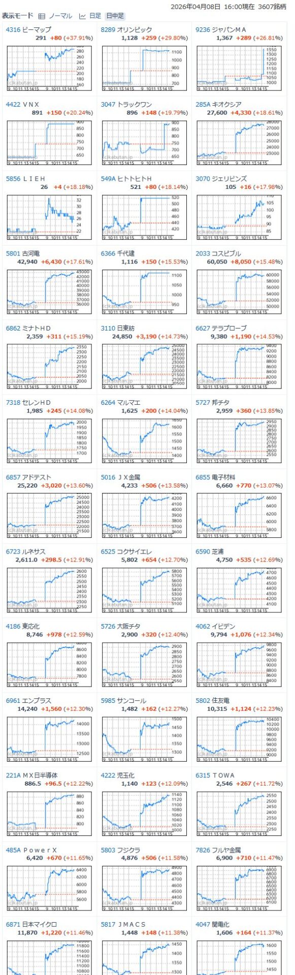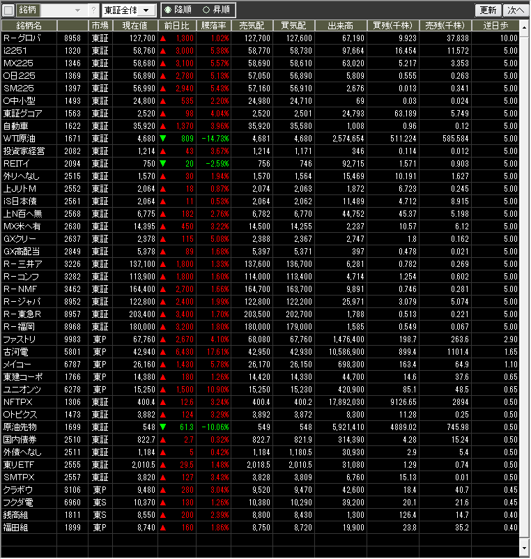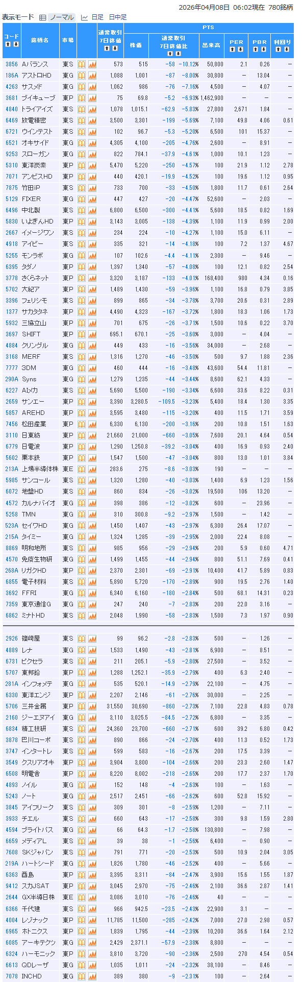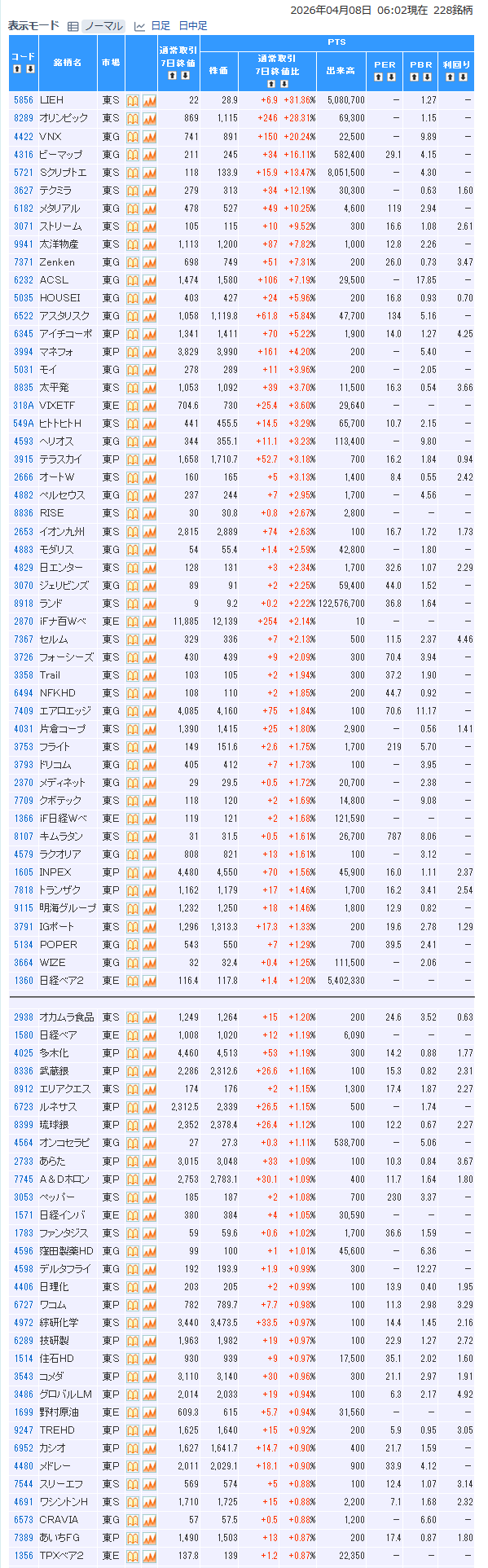 東京衡機がPTS(寄り前、お昼の休憩中)で売れていたのにビックリ