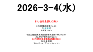 未分類 2026-3-4(水) 市場スケジュール海外中国2月製造業購買担当者景気指数(PMI)(10:30)米2月ADP雇用統計(22:15)米2月ISM非製造業景況指数(24:00)《米決算発表》ブロードコム、ブラウン・フォーマン国内2月消費動向調査(14:00)《決算... 2026.03.04 未分類