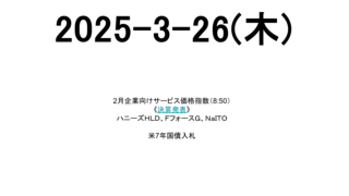 寄り天 2026-3-26(木) 市場スケジュール海外米7年国債入札国内2月企業向けサービス価格指数(8:50)《決算発表》ハニーズHLD、FフォースG、NaITO出典:トレイダーズウェブ 指数 出典:世界株価 Fear & Greed Index 出典:Fear & Gr... 2026.03.26 寄り天持ち株全滅未分類