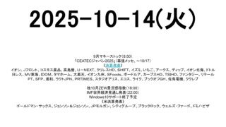 弱い日 2025-10-14(火) 市場スケジュール海外独10月ZEW景況感指数(18:00)IMF世界経済見通し発表(22:00)Windows10サポート終了予定《米決算発表》ゴールドマン・サックス、ジョンソン&ジョンソン、JPモルガン、シティグループ、ブラックロック、ウ... 2025.10.14 弱い日暴落未分類